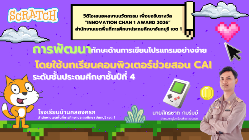 ลำดับที่ 5 การพัฒนาทักษะด้านการเขียนโปรแกรมอย่างง่าย ของนักเรียนชั้นประถมศึกษาปีที่ 4 โรงเรียนบ้านคลองครก โดยใช้บทเรียนคอมพิวเตอร์ช่วยสอน CAI (Computer Assisted Instruction)