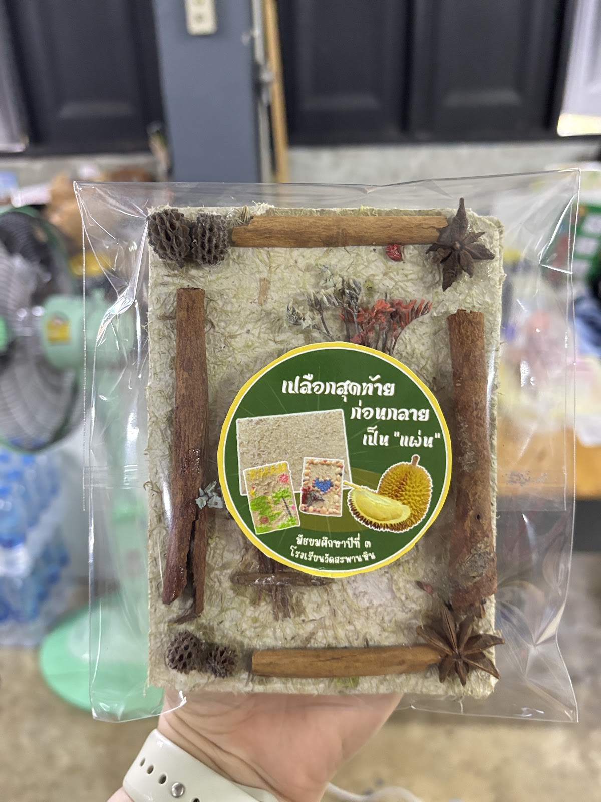 วัสดุหลัก: กระดาษทำจากเส้นใยเปลือกทุเรียนแท้ 100%