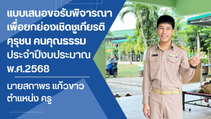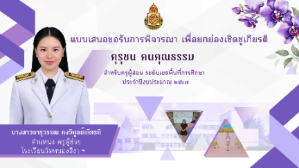 แบบนำเสนองาน การจัดทำนวัตกรรม สร้างสรรค์คนดีด้านการเรียนการสอน ระดับเขตพื้นที่การศึกษา ประจำปีงบประมาณ พ.ศ. 2568 ชื่อผลงานนวัตกรรม : สร้างคนดี มีวินัย ด้วย STEAM Education