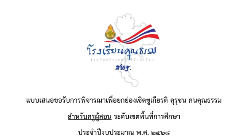 แบบเสนอขอรับการพิจารณา เพื่อยกย่องเชิดชูเกียนติ คุรุชน คนคุณธรรม สำหรับครูผู้สอน ระดับเขตพื้นที่การศึกษา ประจำปีงบประมาณ 2568