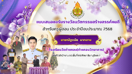 แบบเสนอขอรับการพิจารณาเพื่อยกย่องเชิดชูเกียรติ คุรุชน คนคุณธรรม สำหรับครูผู้สอน ระดับเขตพื้นที่การศึกษา ประจำปีงบประมาณ พ.ศ. ๒๕๖๘ ของนายวัชรศักดิ์ ยิ่งสุจริตพันธุ์